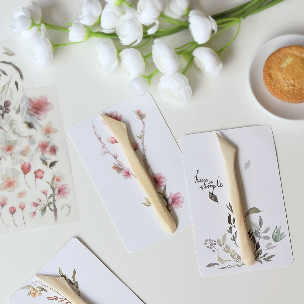 Place the pattern picked on the spot to be transferred. Rub over the sticker back and forth with tool to transfer the pattern on papers. Great for decorating journal, card, scrapbook or other paper craft.