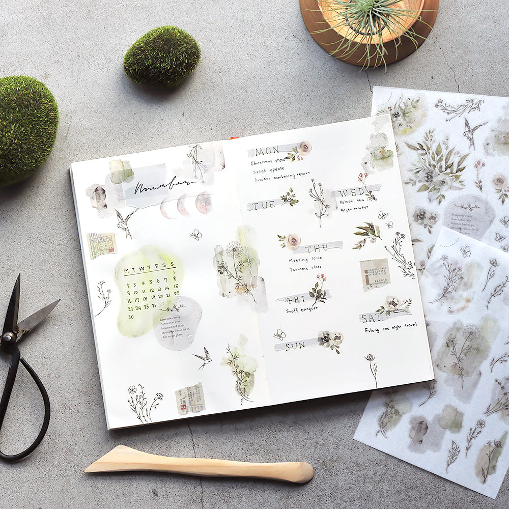 Place the pattern picked on the spot to be transferred. Rub over the sticker back and forth with tool to transfer the pattern on papers. Great for decorating journal, card, scrapbook or other paper craft.