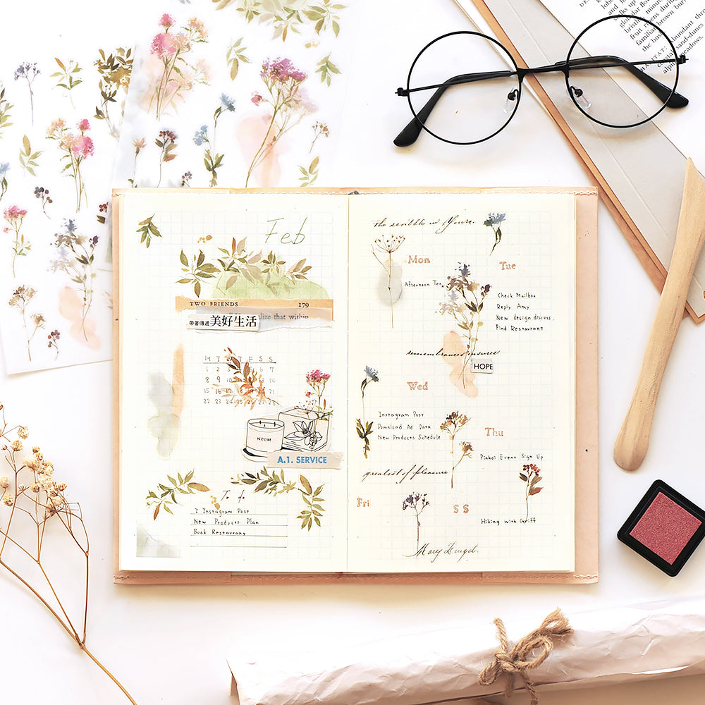 Place the pattern picked on the spot to be transferred. Rub over the sticker back and forth with tool to transfer the pattern on papers. Great for decorating journal, card, scrapbook or other paper craft.